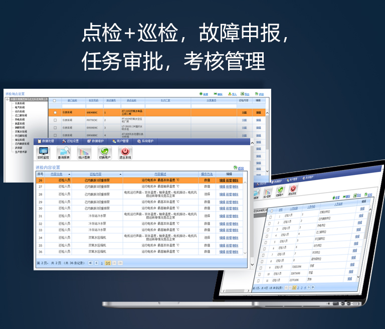点检+巡检,故障申报,任务审批,考核管理