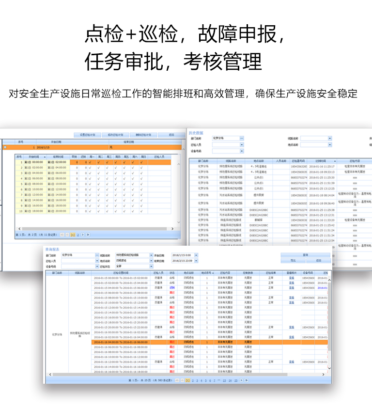 对安全生产设施日常巡检工作的智能排班和高效管理,确保生产设施安全稳定