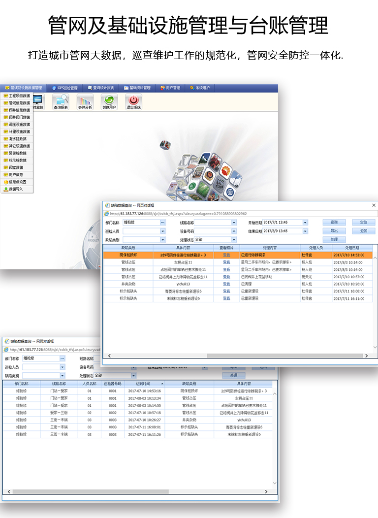 结合管网数据平台,对管网设备设施定期维护与消缺,